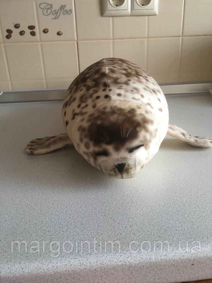 Іграшка 3D тюлень плюшева іграшка 50 см (подушка) Темний Сувенір подарунок Морський котик